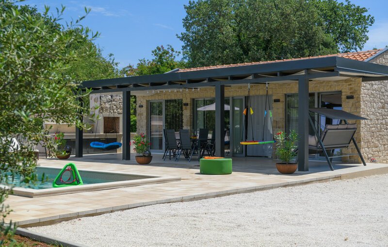Here, you and your family will enjoy the perfect holiday. The modern holiday home offers all the comfort you could dream of. After a restful night, you can step directly onto the terrace and take your first dip in the pool. Afterwards, you can prepare your first coffee in the beautiful living room and enjoy it on the terrace.